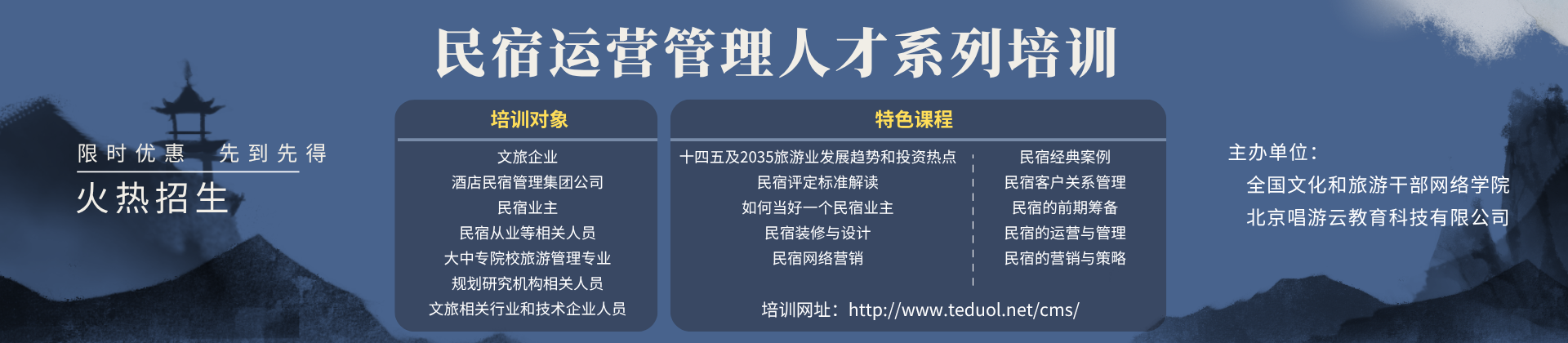 关于举办全国民宿运营管理人才线上培训班的通知 为抓住国家乡村振兴战略方针和文旅融合背景下民宿业的发展新机遇,谋划新发展,满足民宿的运...17 2020-04